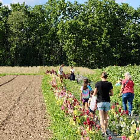 We have 280 CSA members who pick up their shares, which include U-Pick items like green beans, cut flowers, cherry tomatoes, and more, right here on the farm.